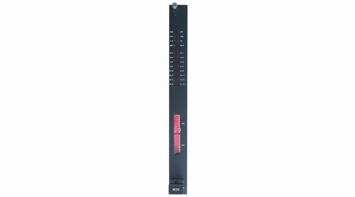 M35交叉連接板插裝ZMUX-3300平臺的任意一個通用業(yè)務(wù)板插槽,主要完成1~16路E1信號接入,實現(xiàn)16路E1全時隙交叉連接功能。